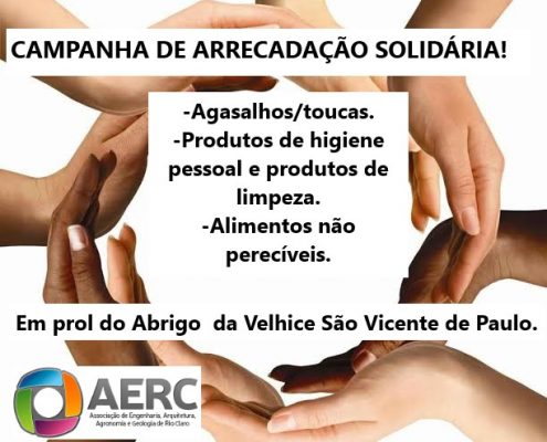 A AERC está realizando uma campanha de arrecadação para o Abrigo da Velhice São Vicente de Paulo. Neste momento de crise eles estão precisando mais do que nunca de nossa ajuda!