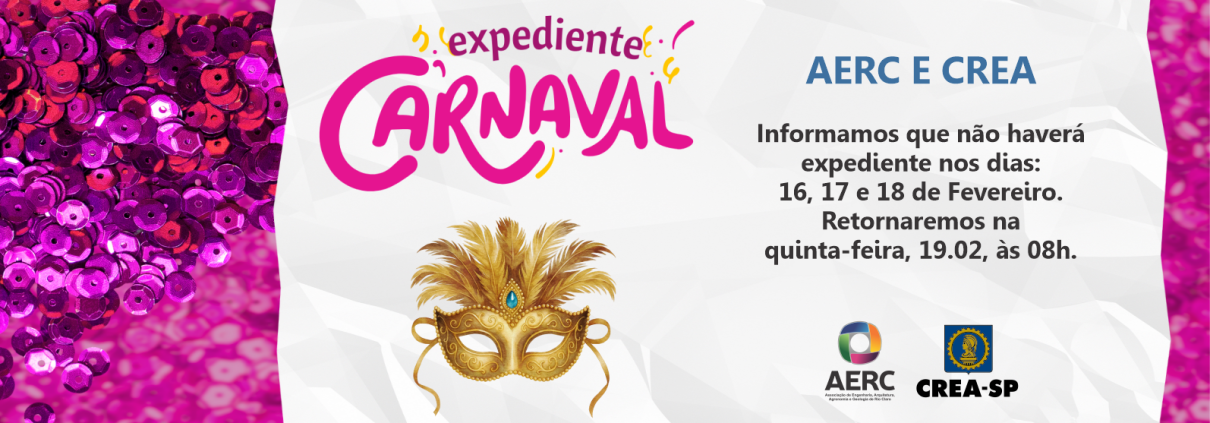 CREA, NotíciasComunicado – Expediente Carnaval12 de fevereiro de 2026/por AERC . https://aerc.org.br/wp-content/uploads/2026/02/site.png 619 1594 AERC . https://aerc.org.br/wp-content/uploads/2019/03/logo.png AERC .2026-02-12 14:55:542026-02-12 14:55:54Comunicado – Expediente Carnaval