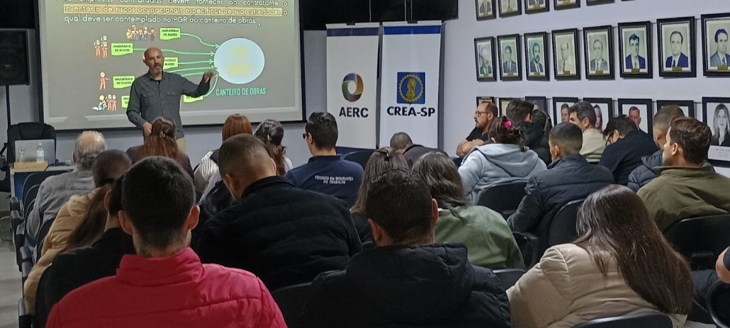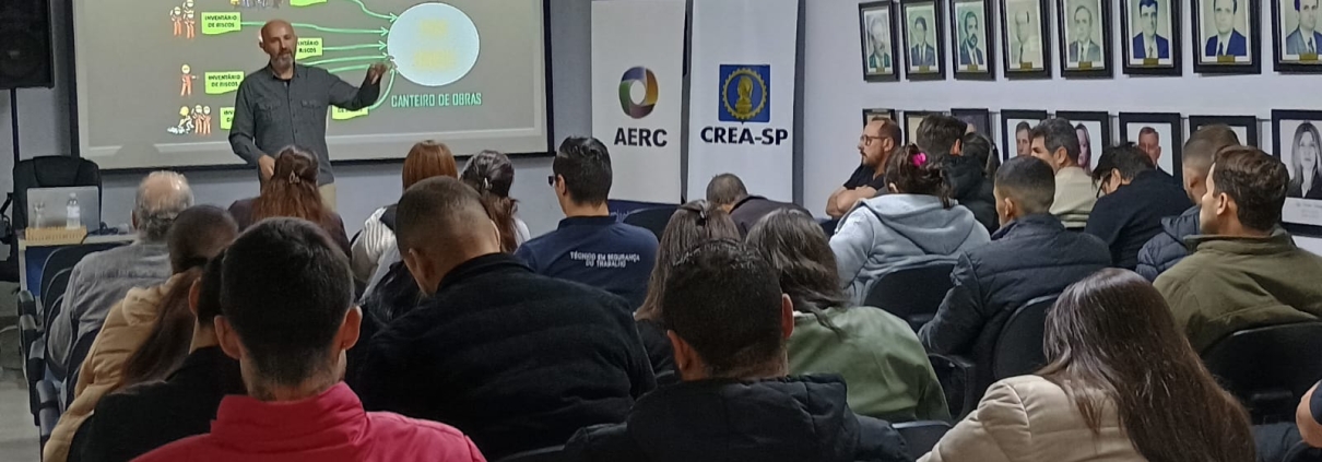 Palestra realizada no dia 12.08 na sede da AERC, com o tema “Construção Civil: Desafios e Boas Práticas – Aspectos Legais e de Fiscalização“, ministrada por Rodrigo Vaz – Eng. de Segurança do Trabalho.